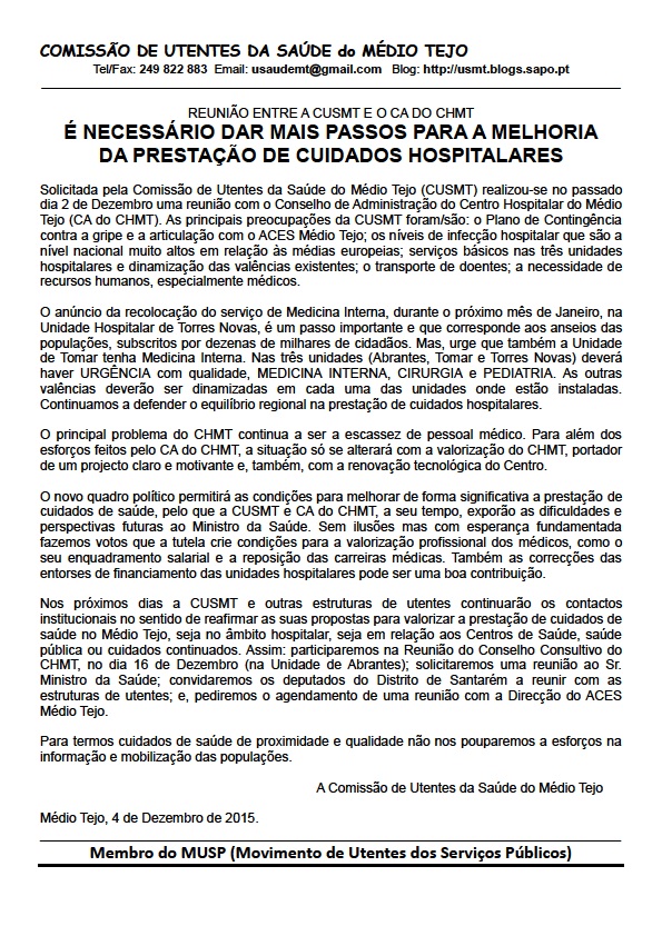 Sobre a reunião entre a CUSMT e a CA do CHMT