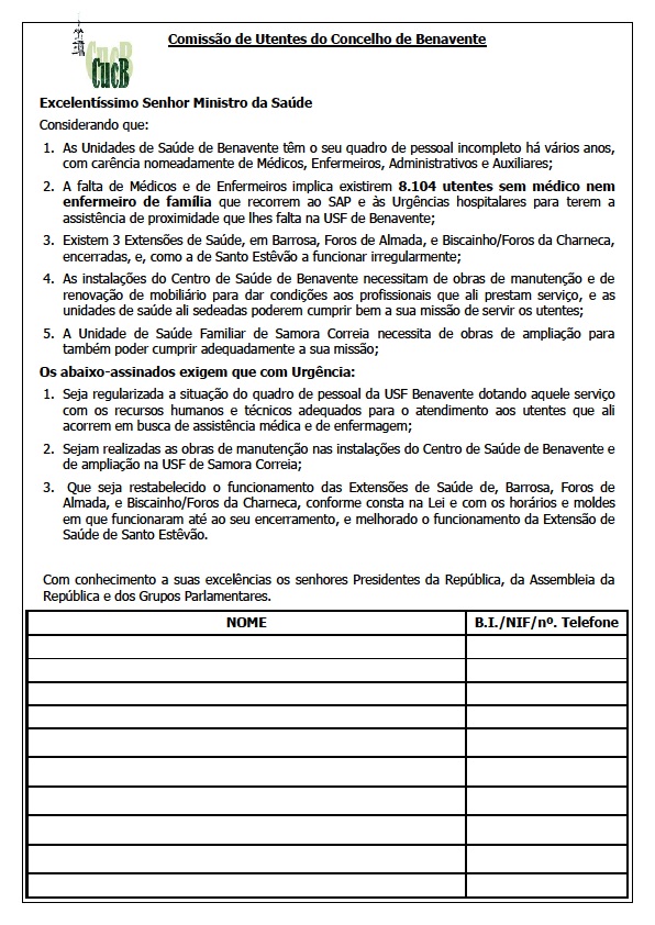 BENAVENTE: abaixo assinado por melhores cuidados de saúde