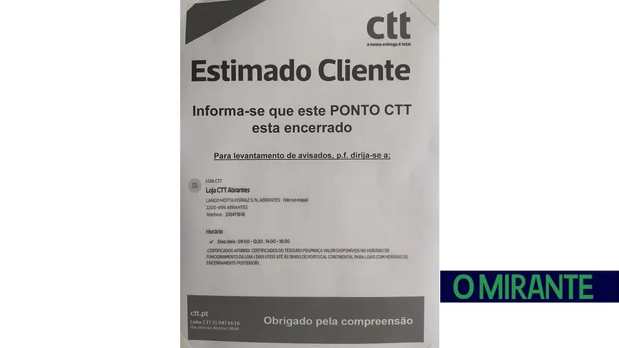 CTT fecham posto de correios em Tramagal que servia três mil pessoas
